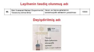 Bu qənaətə gəlməyimizə səbəb olan faktlardan biri də 2025-ci ilin qrant qalibləri sırasında yer alan Bakı İncəsənət Mərkəzi Eksperimental Yaradıcılıq Birliyi ilə bağlıdır. QHT-lərə Dövlət Dəstəyi Agentliyinin rəsmi elan etdiyi nəticələrdə bu təşkilatın qalib olduğu layihənin adı açıq-aydın göstərilib: “İrəvan və Gəncə şəhərlərinin tarixi etnoqrafik xəritəsinin yaradılması”. Yəni iki şəhəri əhatə edən, miqyaslı və iddialı bir layihə. Bu layihəyəyə görə də 15 500 manat dövlət vəsaiti ayrılıb.
